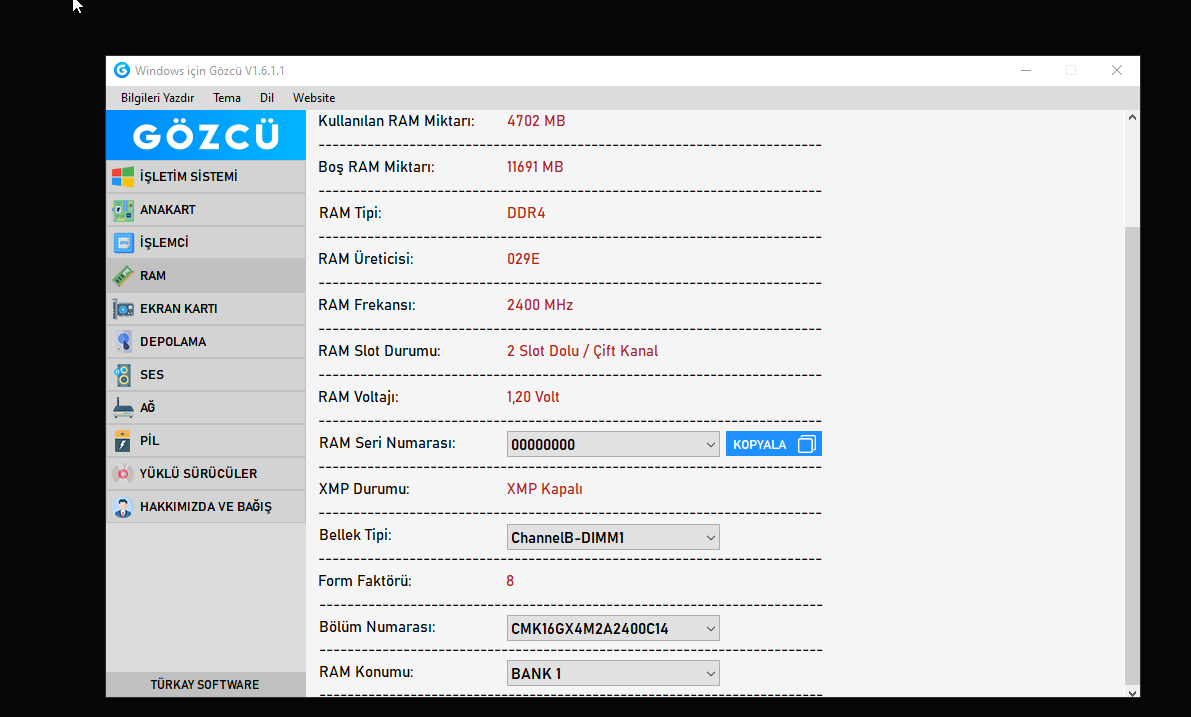 Hocam XMP BIOS üzerinden çekemedim maalesef. Şöyle bir kod ile karar veriyor ona. Tamamen sorgu yüzünden.