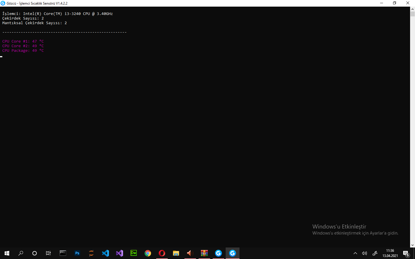 Hocam tek bir sorunla karşılaşmadığım bütün hatalar aslında benim dikkatsizliğimmiş ama gerçekten bir gerçek hata buldum galiba bu sefer dahili Intel ekran kartımın sıcaklığını ölçmüyor ölç bastığım zaman AMD ile NVIDIA var ama benim sistemimde AMD yok ki.