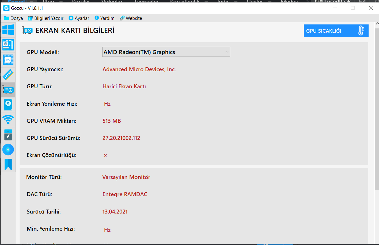 • Ekran kartı bölümüne, Grafik Sürücüsü özelliği eklendi. Bu özellik ekran kartının en temel DLL dosyasını göstermektedir.