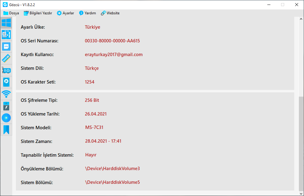 • İşletim sistemi kısmına, Önyükleme bölümü ve Sistem bölümü özellikleri eklendi. Bu sayede sistemin hangi bölümler üzerinde kurulu olduğunu görebilirsiniz.