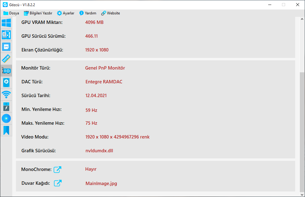 • Ekran kartı bölümüne, NVIDIA kartlar için sürüm numarası sadeleştirme özelliği eklendi. (Örnek: 466.11 gibi).
