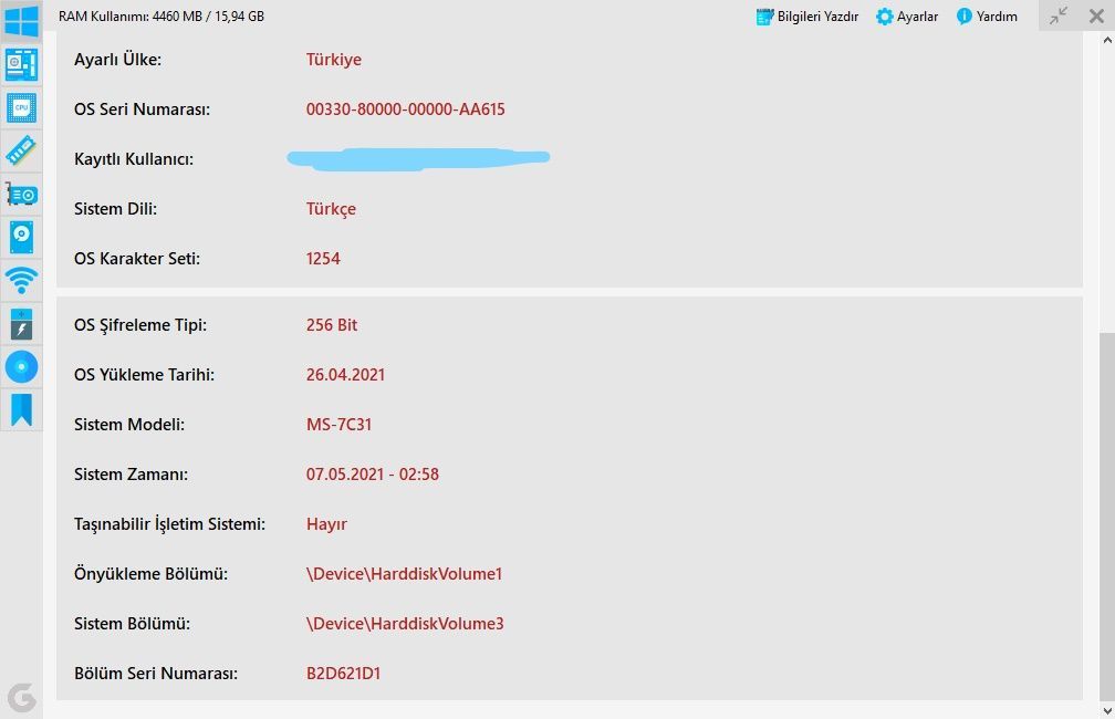 - OS bölümüne Bölüm Seri Numarası özelliği eklendi.