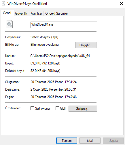 İndirdim dosyaları tekrardan hepsini tek dosyaya attım o dediğin remove dosyasını yönetici olarak çalıştırdım ve entera bastım sonra hepsini sil dedim eski indirdiğim dosyadan kalan tek windivert64.sys dosyası silinmedi.