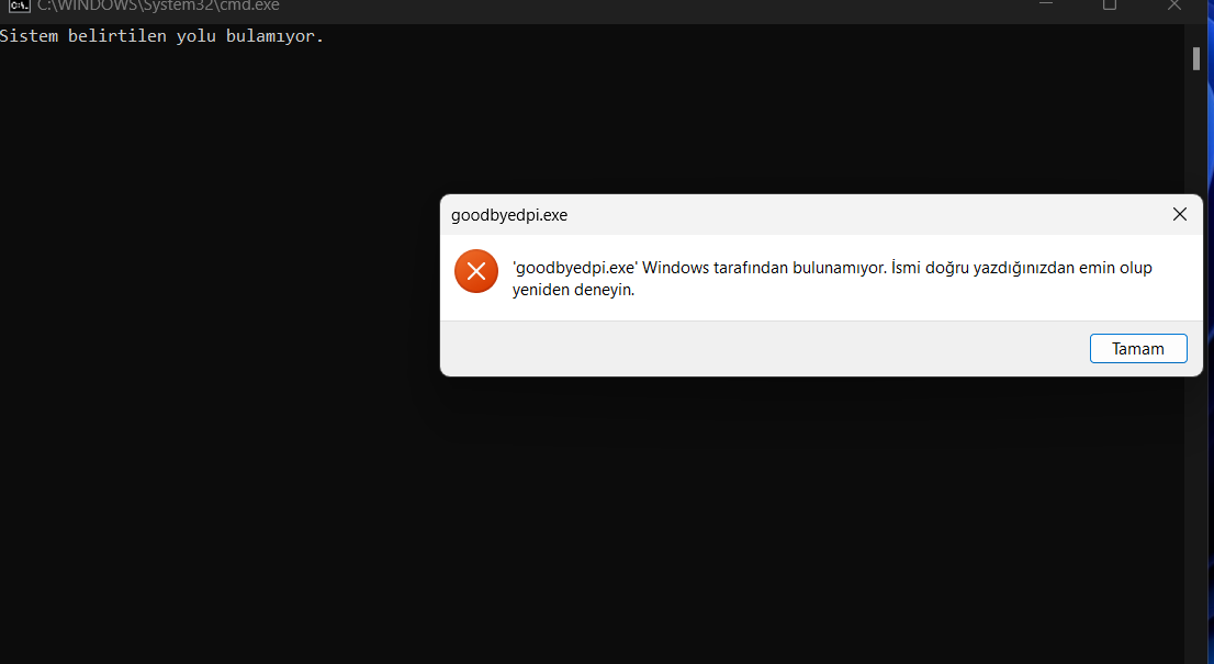 "Goodbyedpi Windows tarafından bulunamıyor" hatası