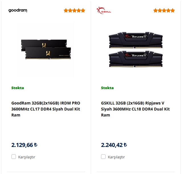 Ben olsaydım G.Skill alırdım.Selam, iki RAM arasında kaldım. Birisi CL17 Diğeri CL18, aradaki CL değeri beni biraz düşündürüyor. Sizce hangisini seçmeliyim?