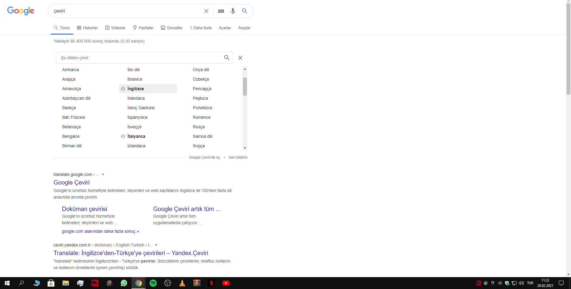 Bildigim kadariyla siz google translate yazip girdiginizde daha onceden secmis oldugunuz dil ile birlikte gecmisinizde yer alan linke tikliyorsunuz, kolaylik olsun diye. Yani daha onceden acilmamis bir Google Translate sekmesi acin.