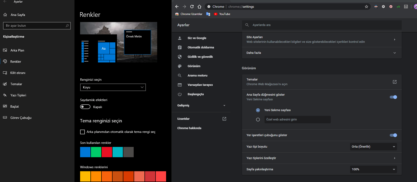 Chrome sadece koyu ve açık tema için ayar sunmuyor. Bunu Windows 10 koyu mod ayarına göre değiştiriyor. Neden sunmuyor bilmiyorum. Belki yakında sunar.