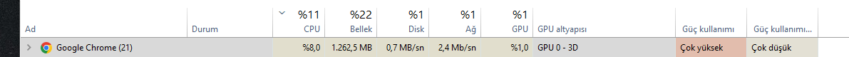 Chrome üzerinde, sağ üstteki üç nokta → Diğer Araçlar → Görev Yöneticisi kısmından hangi işlemlerin kaynak tükettiğine bakabilirsin.