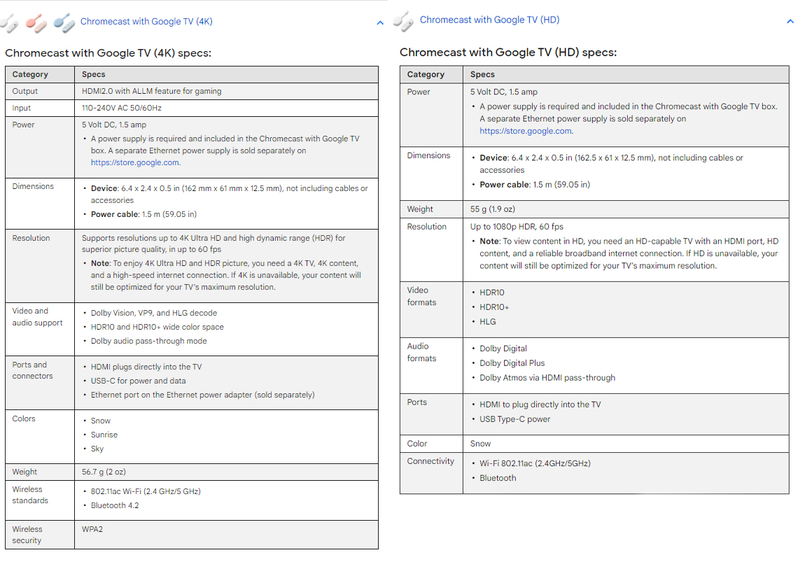 Arkadaşlar bilgilendirme yapmış olayım google kendisi özelliklerini belirtmiş (link) Chromecast 4k OTG ve İnterneti USB C üzerinden desteklerken Chromecast HD modeli desteklemiyor, bu gibi farklılıkları aşağıya bırakıyorum görsel olarak;