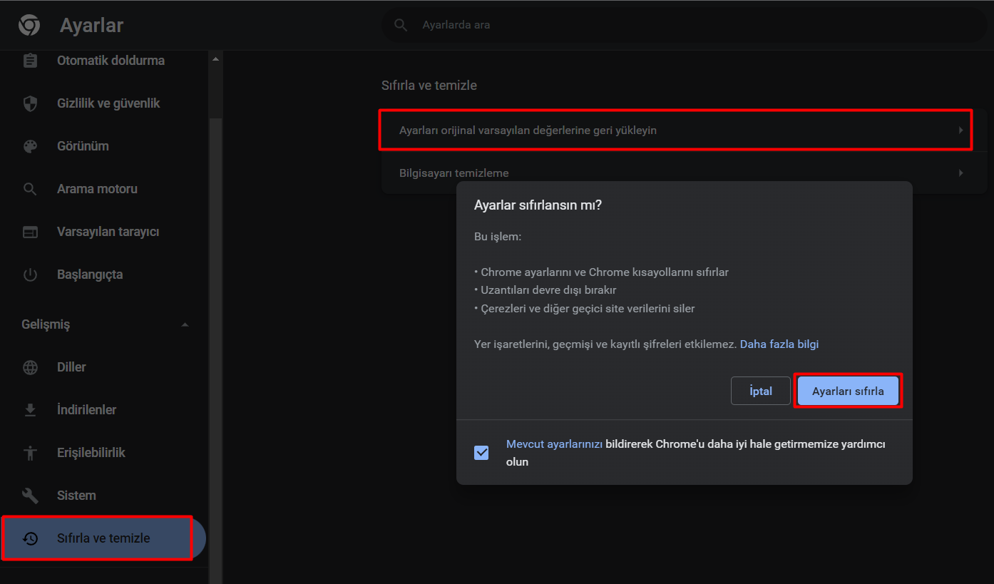 +Google Chrome'u baştan yükledim sorun devam ediyor.
