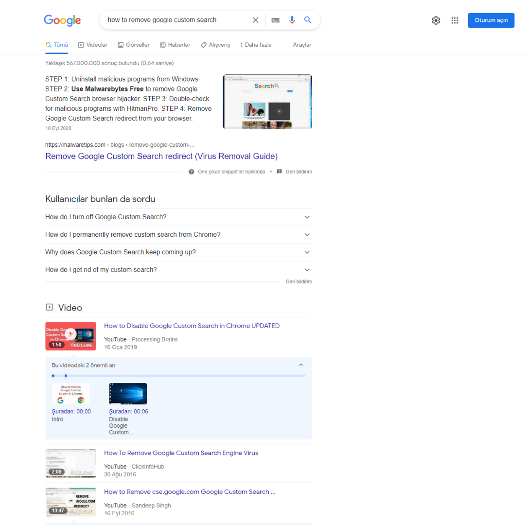 Google Chrome'da her arama sonucumun peşinden Custom Search diye ayrı bir pencere daha açılıyor, kurtulmaya çalışmama rağmen bir türlü kurtulamadım. Fikirlerinizi bekliyorum.