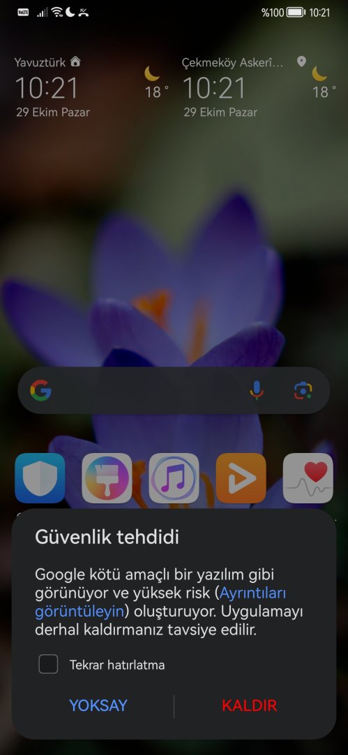 "Google kötü amaçlı bir yazılım gibi görünüyor" hatası