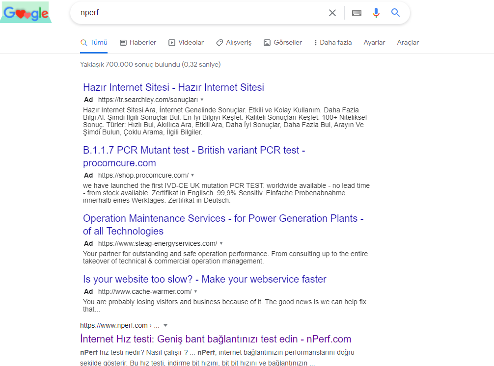 Sorunum Google'da herhangi bir arama yaptığım zaman üstte reklamlar çıkıyor.