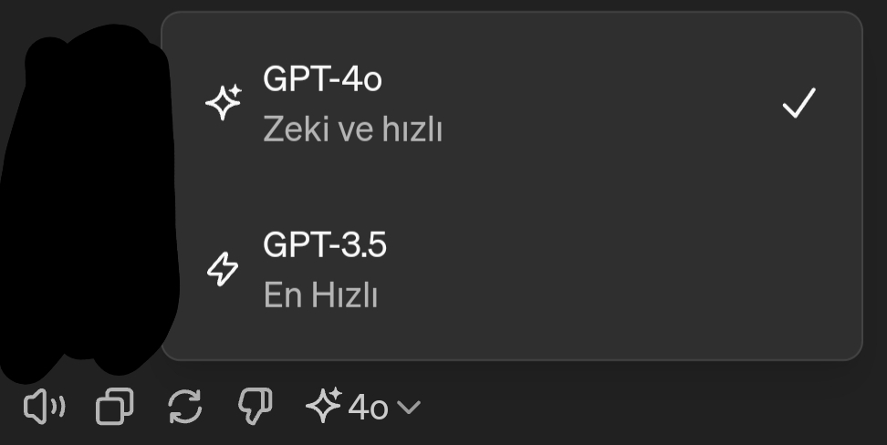 Telefondan web sitesine giriş yapın bir mesaj yazdıktan sonra cevabın altındaki işaret şimşekse yıldıza çevirin. Yıldızsa ellemeyin. Sonra isterseniz bilgisayardan isterseniz uygulamasından devam edin. Yalnız tek sorun şu belirli bir kullanımdan sonra 3 saat bekleme süresine takılıyorsunuz ve otomatik olarak ayarımız 3.5 sürümüne dönüyor.Merhaba yeni çıkan GPT 4o yu şu an kullanabiliyor muyuz? Kullanabiliyorsak nasıl kullanabiliriz yardım olursanız sevinirim.