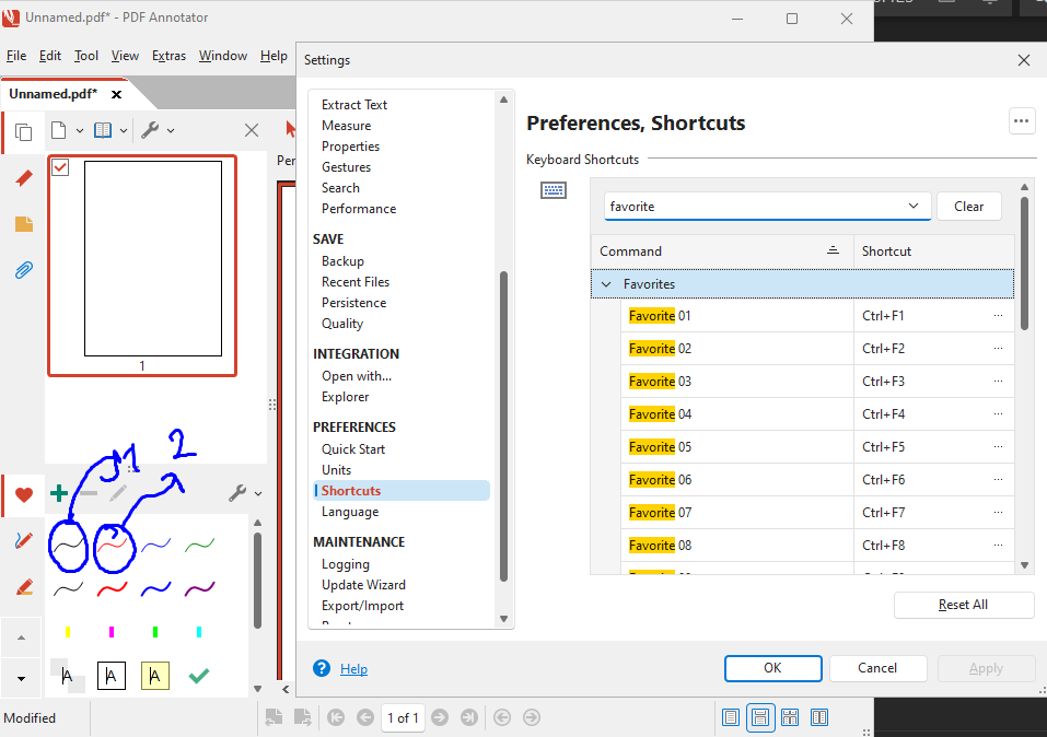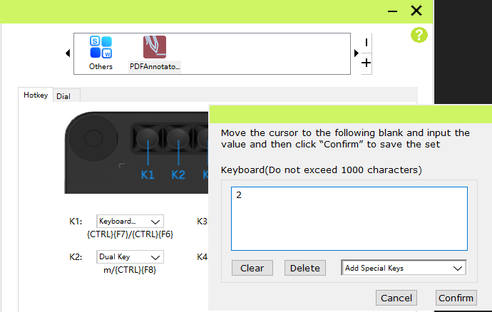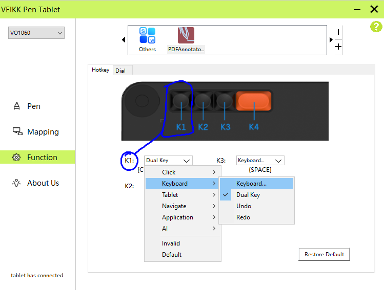 Artık K1 tuşuna basıldığı zaman ilgili kalem PDF Annotator üzerinde seçilecek. İsteyen arkadaşlar "Dual Key" olarak tercih edip bir tuşta iki kalem yapabilir.