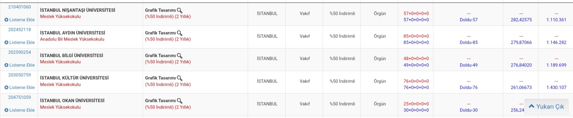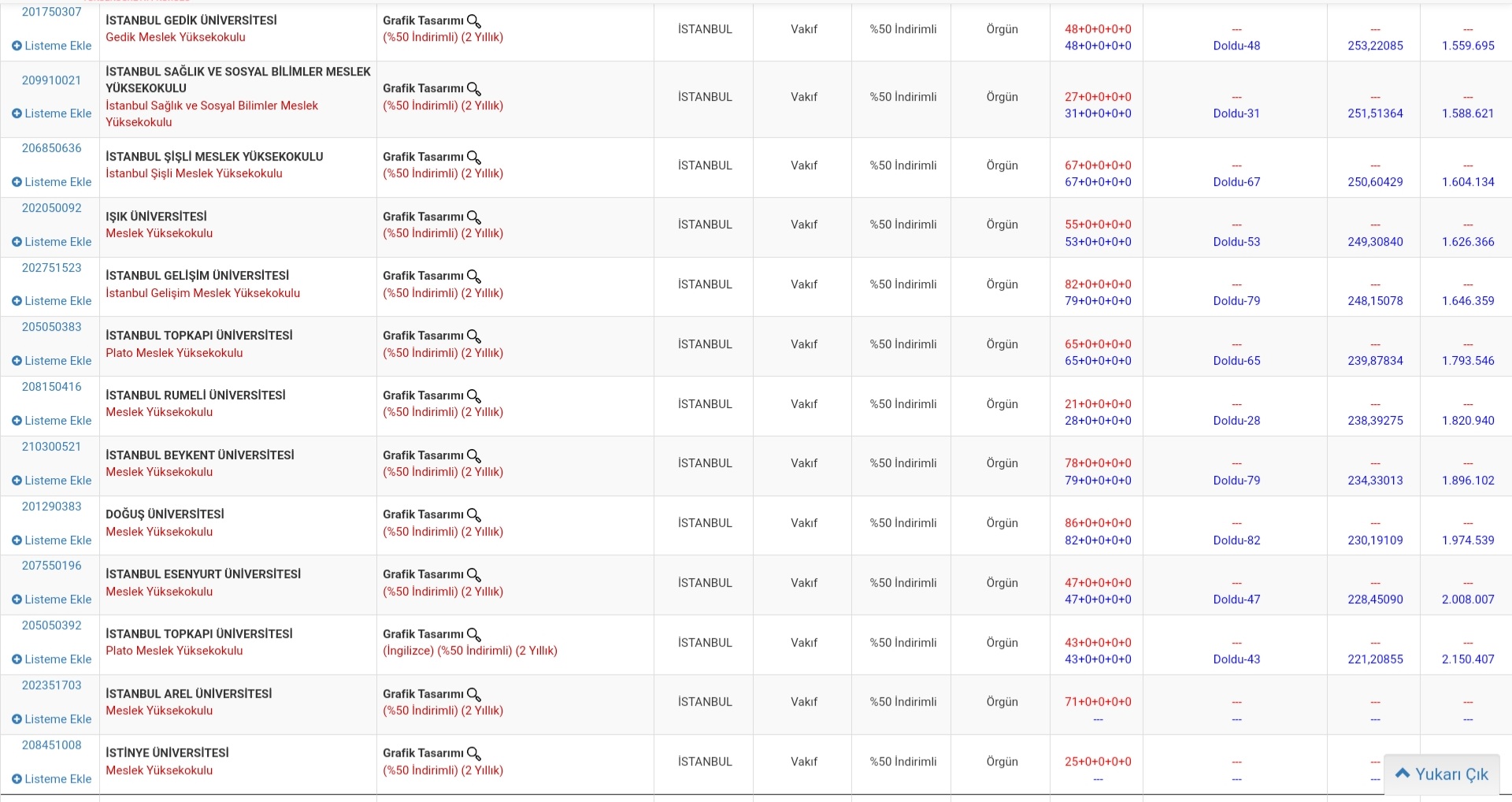 Onlar %50 burslu ya da ücretlidir.Şu sitede TYT 1.000.000 sıralamalarda bayağı üniversite var İstanbul'da.
