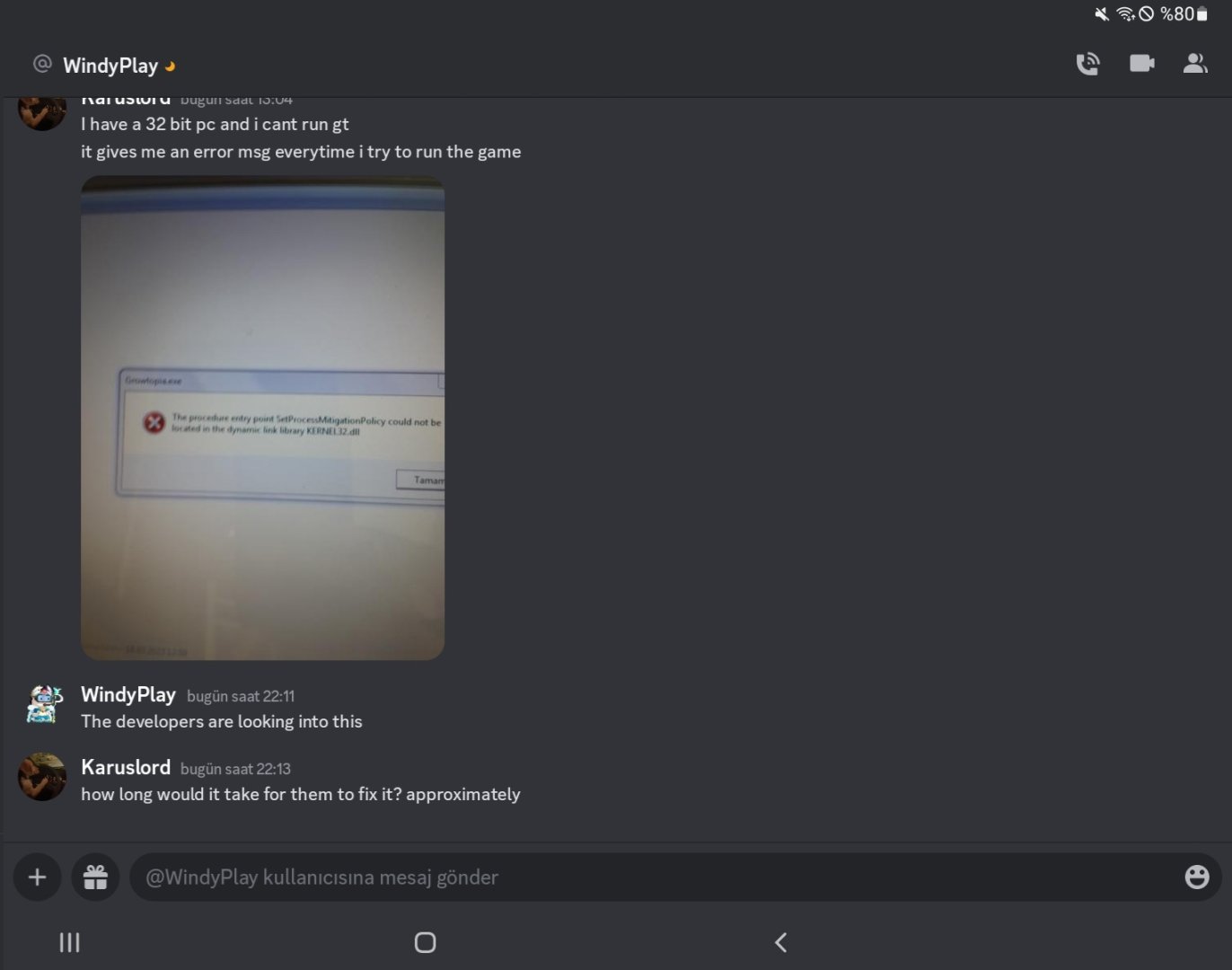 Growtopia'nın 4.19 sürümünü indirdikten sonra ben bu sorunu yaşamaya başladım. Hatanın görüntüsü fotoğraftadır.