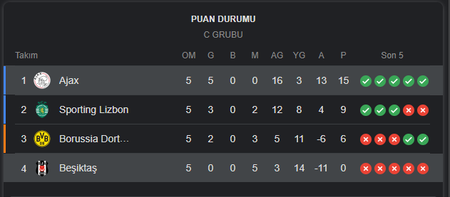 - Beşiktaş JK 1-2 Ajax Amsterdam
