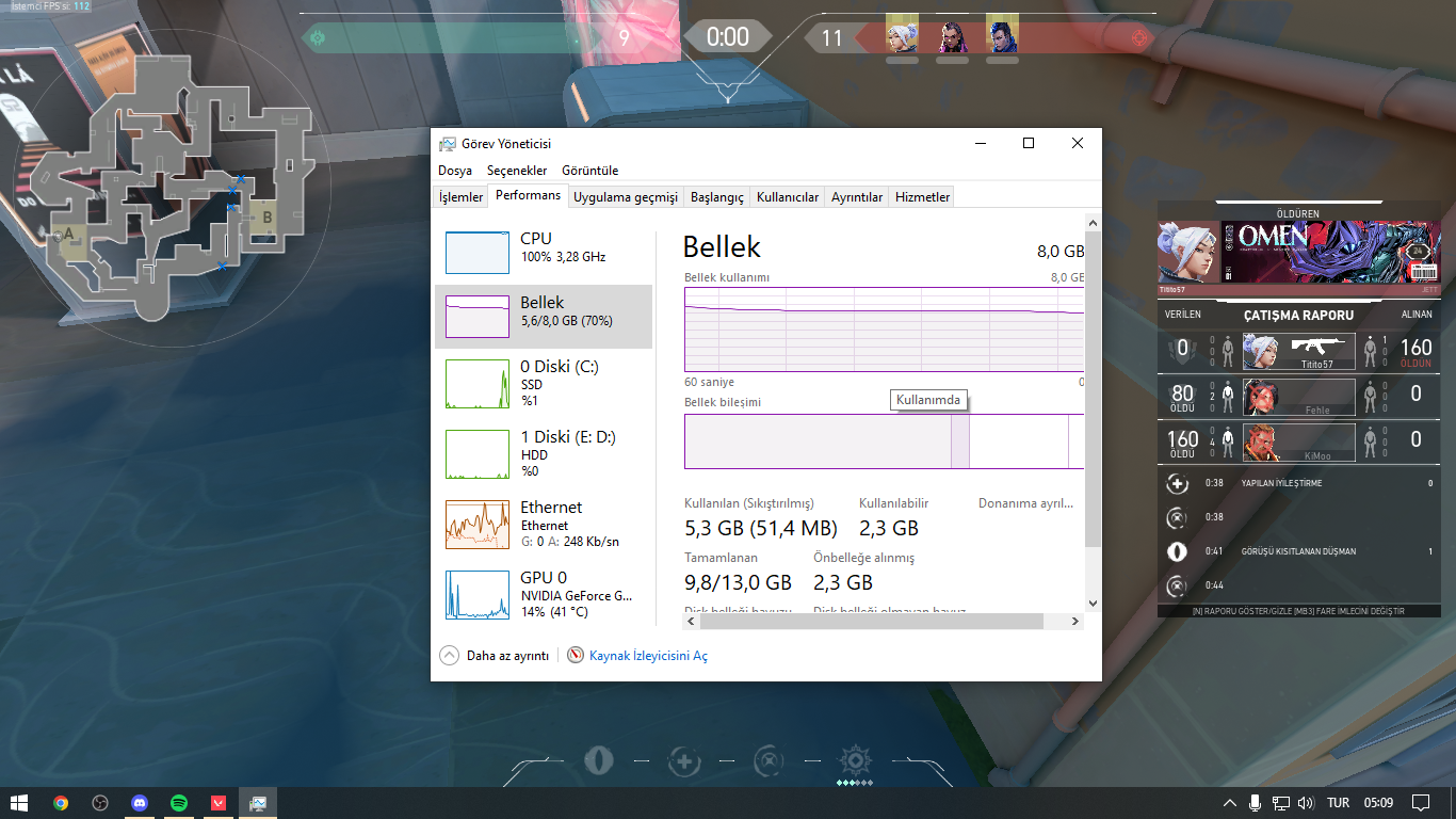 Merhaba. i3 3220, GT 1030, 8 GB RAM sistemimde Valorant oynarken CPU 100% GPU 5%-15% arası kullanılıyor. Aynı şekilde GTA 5 oynarken CPU 100% GPU 15% kullanılıyor. Normalde GTA 5 ekran kart bazlı bir oyun. Eski ekran kartımda(GT 730) tam tersi Valorant ve GTA 5'te CPU 50% GPU 100% kullanılıyordu. GT 730 ile GTA da 30 FPS alıyorken GT 1030 ile 40-60 FPS arası gidip geliyor ve anlık droplar giriyor. Ekran kartının böyle düşük kullanılması normal mi? Kullanımı artırmanın bir yolu var mı? FurMark testinde 100% kullanılıyor ve test sonucu normal.