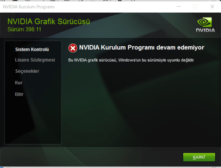 Başlıktaki gibi ekran kartımı hiçbir şekilde güncelleyemiyorum. Orijinal sitesinden indirdim Driver'ları kurdum fakat resimde olduğu gibi sonuçlanıyor. Her türlü makale ve videoya baktım bir türlü çözülemedi bu sorun. Ekran kartı sıkıntısız çalışmakta ve bilgisayarın her türlü performans ayarları yapıldı. Örnek Valorant'a giriyorum girerken 441.20 sürümü önerilen minimum demekte, oyuna giriyorum düşükte 80-100 arası FPS alıyorum birkaç saniye sonrasında oyundan otomatik olarak atıyor ve kapanıyor. Driver çöktü diyor güncel olmadığı için.