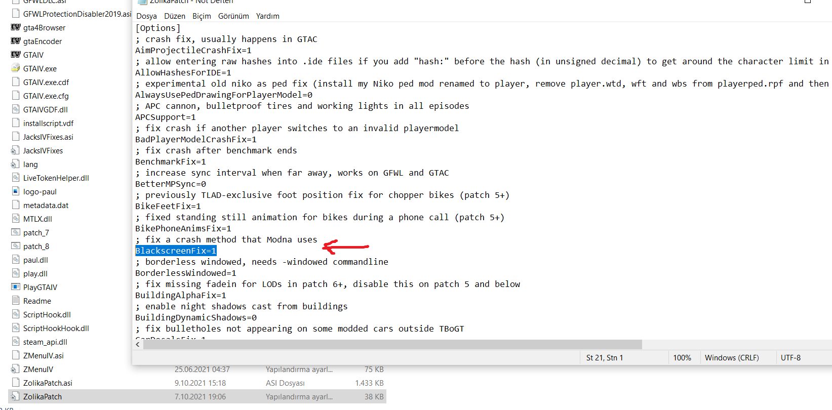 Eğer oyuna girerken siyah ekran sorunu yaşıyorsanız, oyunun klasörü içerisindeki Zolikapatch.ini'yi açıp Blackscreenfix yazan değeri 1'den 0'a çevirin