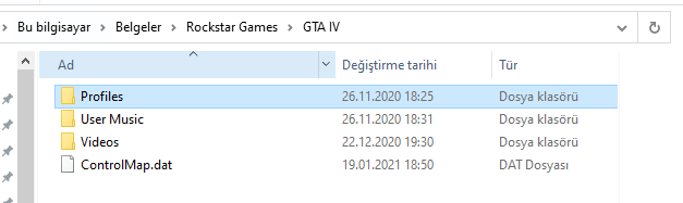 Aynı şekilde yukarıda belirttiğim gibi, belgeler kısmında da bulunmuyor, Rockstar Games'in içinde sadece user music adlı dosya var.