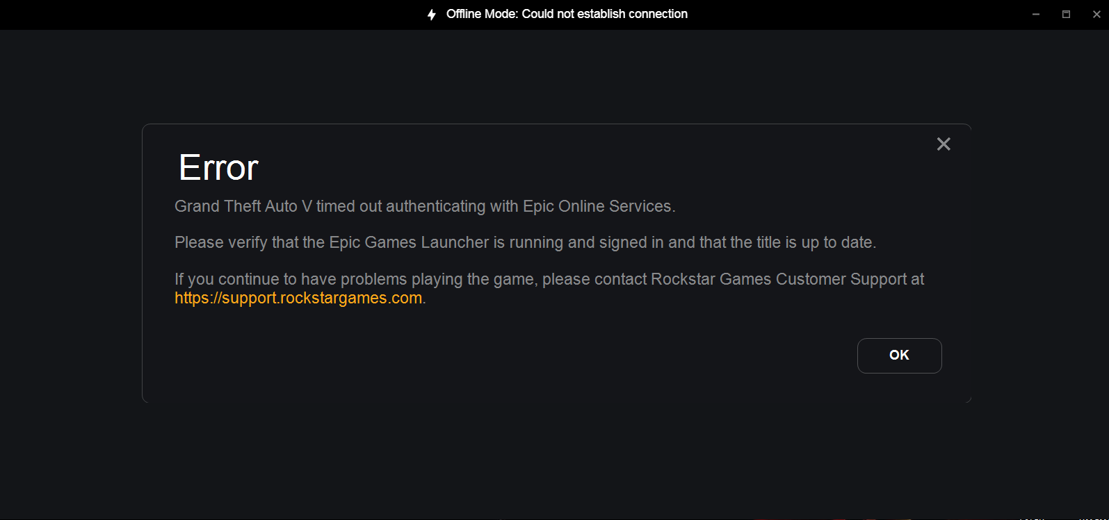 Daha önceden GTA 5'i indirip oynadım Online'da karakter de oluşturdum ama sıkıntı Rockstar Games Launcher'da sanırım çünkü Rockstar Launcher'ı Epic olmadan açmayı denedim ve "Connection Failed" diye bağlantı hatası yaşadım.