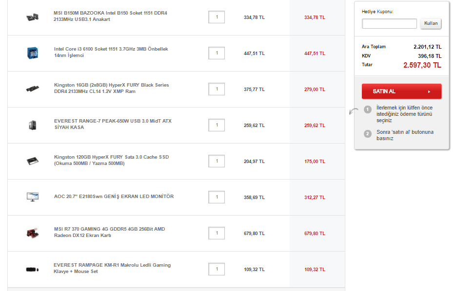 Buyrun. Bu sistemi almanızı tavsiye ederim. 3000 Tl ye toplanabilecek en uygun, dengeli ve yüksek performanslı bir sistem. İnternetten alışveriş yaparsanız 100 ila 200 tl gibi bir para cebinizde kalır.