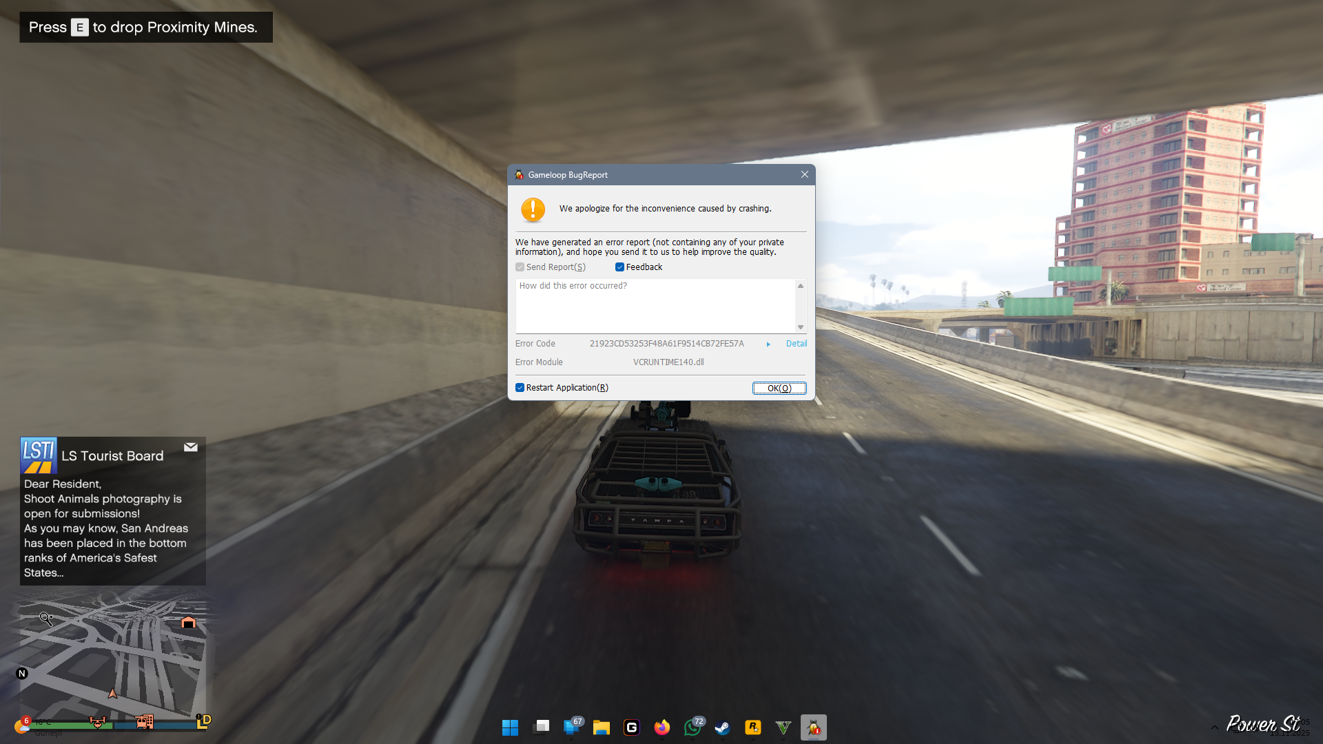 GTA'yı 10-20 dakika oynadıktan sonra oyun donup görseldeki hatayı alıyorum ve ardından sunucudan düşüyorum veya oyundan atıyor.