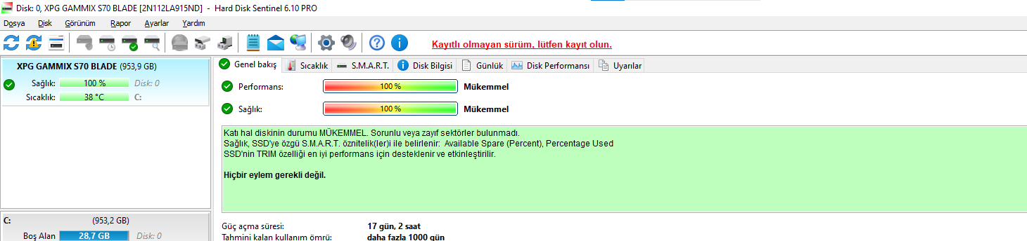 Merhaba. Daha alalı 1 ay olan bilgisayarım ile bir hafta önce tek başıma GTA 5 Online oynarken bir anda textureler yüklenmemeye başlamıştı ardından oyun dondu kapatmak zorunda kaldım. Ekran kartı sürücüsünü güncelledim ne olur ne olmaz diye daha sonrasında GTA 5 oynarken hiçbir sorun yaşamadım. Fakat yine tek başıma olduğum sunucuda Online oynarken aynı şey yaşandı. Başka hiçbir oyunda böyle şeylere denk gelmedim. Uzunca süreler GTA 5 oynadım yine hiçbir şey olmadı. Sadece 2 kere oldu ama içime kurt düştü buraya yazayım dedim. RAM testini Windows üzerinden daha 2 gün önce yaptım tertemizdi. SSD mi sorunlu acaba deyip Hard Disk Sentinel indirdim onun sonuçları da bu şekilde:
