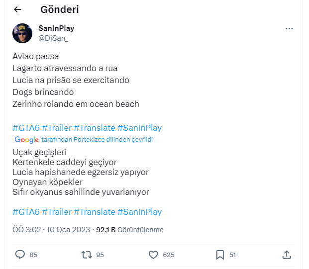 Daha önceden yaptığı isabetli sızıntılarla gündeme gelen sanınplay GTA 6 Trailer'ını özetledi. Sanınplay ayrıca eylül 2022 sızıntılarından önce kadın karakterin adının lucia olduğunu biliyordu.