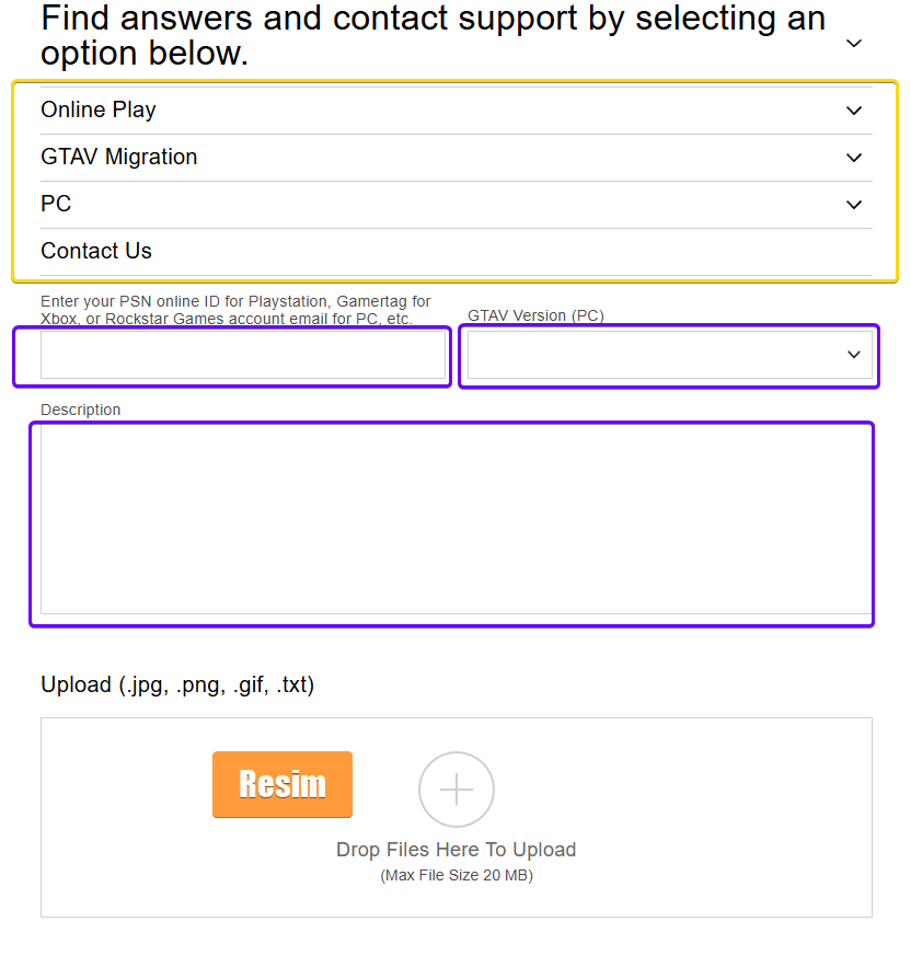 Nasıl yani? Problem nedir anlamadım tam olarak. Attığım linke girip ilgili Rockstar hesabınızın mail adresini ve sorununuzu yazıp resim vs. yüklemeniz yeterli olacaktır.