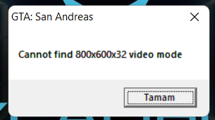 GTA San Andreas "cannot find 800x600x32 video mode" hatası