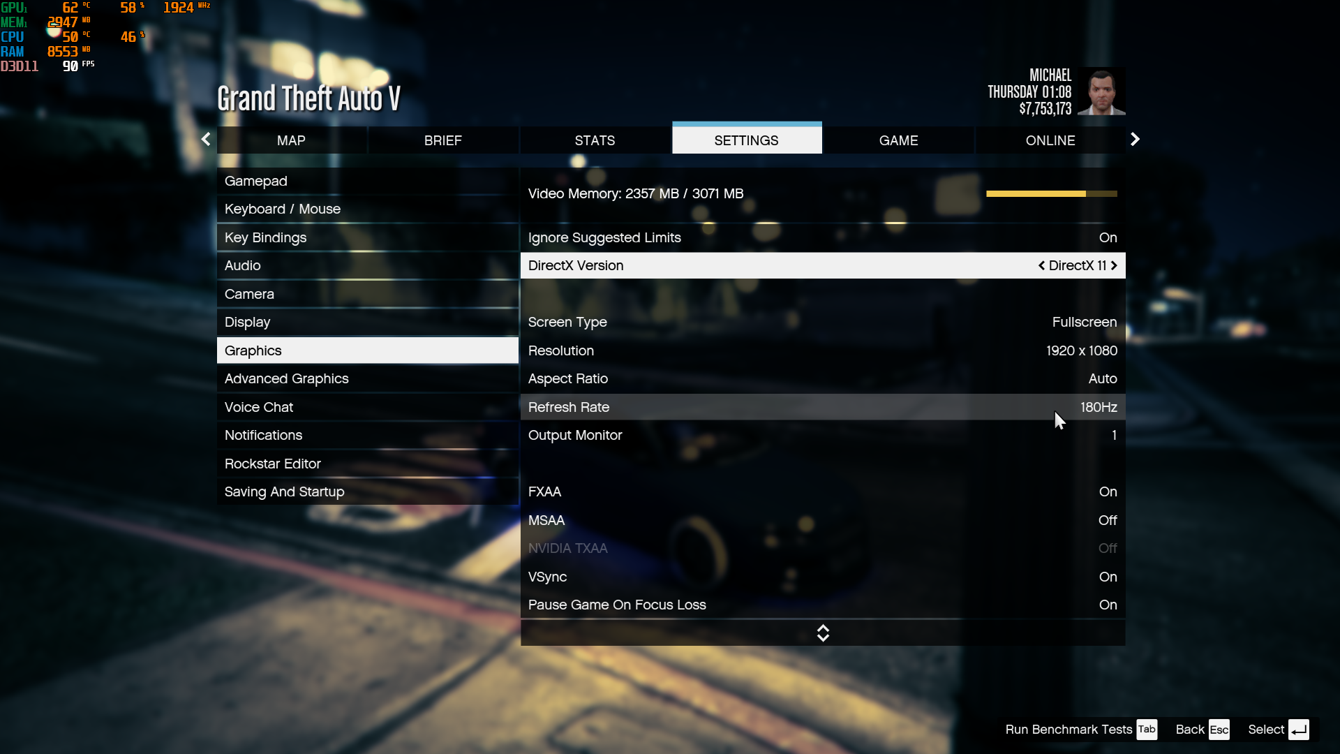 180Hz'e ayarlamama rağmen GTA V 90'ın üstüne çıkmıyor. Nasıl çözebilirim?