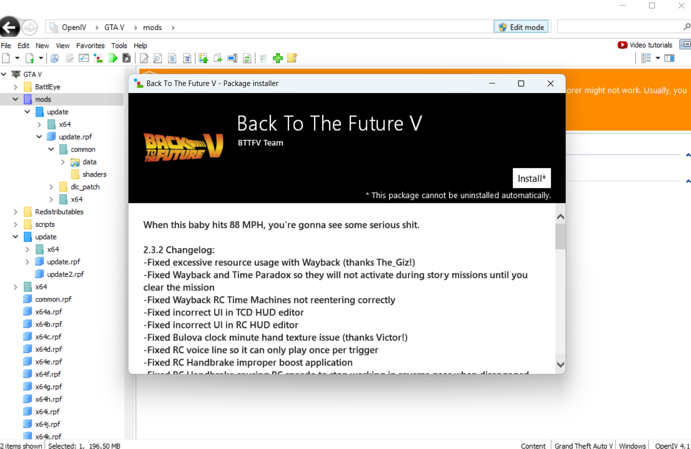 Hocam artık ana mod dosyasını indirin. Açın. Zaten önünüze kurulum ekranı gelecek. Oradan önce install, ardından mods tuşuna basın. Kurulacak. Bu sırada diskinize falan dikkat edin. Başına bir iş gelmesin. Kurulduktan sonra başarıyla tamamlandı ekranı verecek. Bu ekranı verdikten sonra OpenIV'yi kapatın. Oyunu açın. Bir hata ile karşılaşırsanız haber verin.