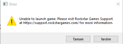 GTA V "unable to launch Game" hatası