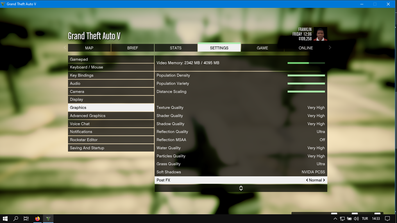 Nvidia GTX950M, I7 6700HQ.16GB RAMDistance scaling ayarı bununla ilgili fakat siz sona çektiğiniz halde böyle ise kaplamaların yüklenmesi zor geliyor demektir. Sisteminizi belirtebilir misiniz?
