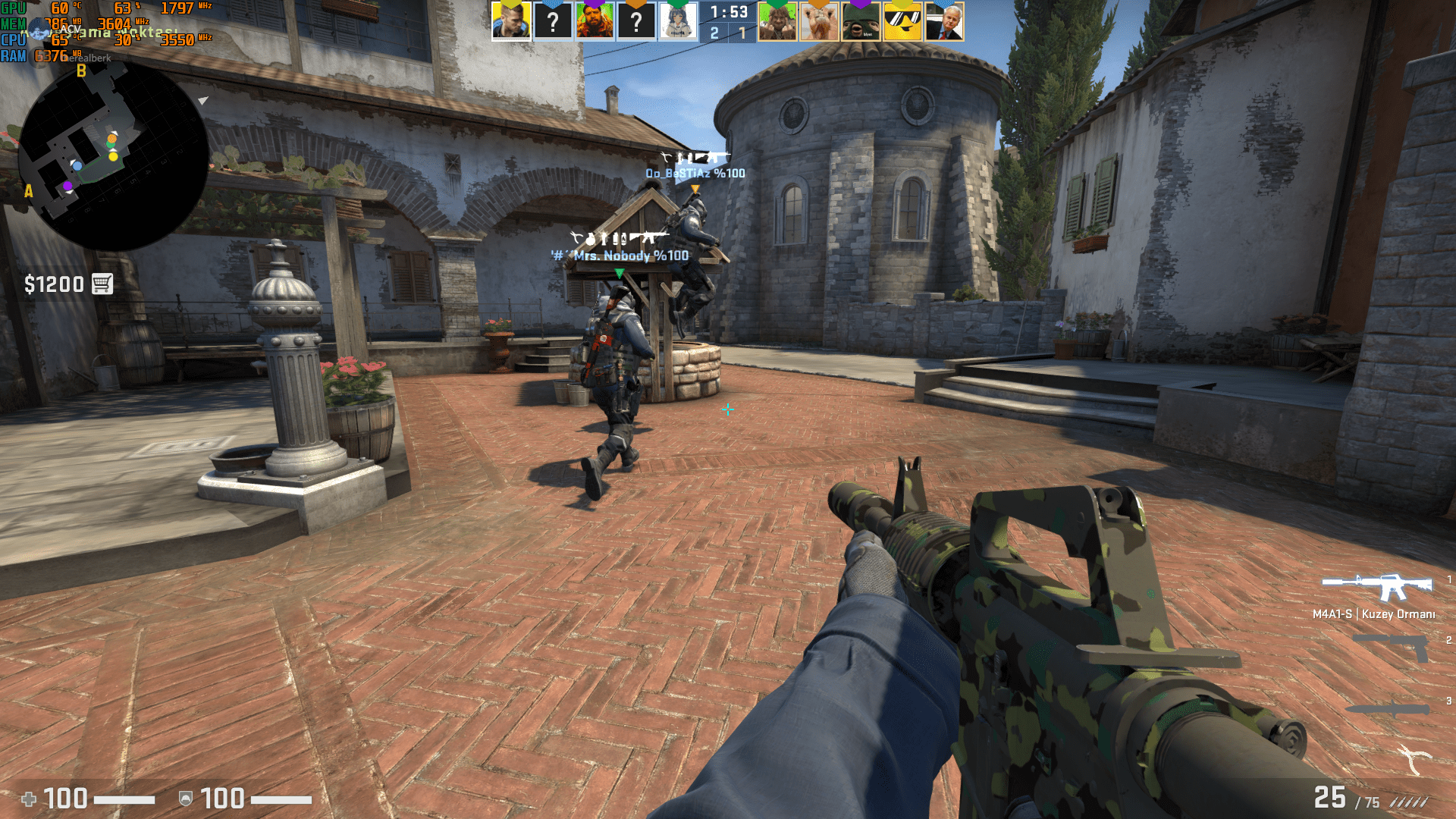 CS:GO ekran kartımın yalnızca %50 gibi bir kapasitesini kullanıyor. Bu da doğal olarak düşük FPS almama yol açıyor. Oyun içerisinde dikey eşitleme açık değil zaten FPS'de kilitli değil sürekli değişiyor. 144Hz monitör kullanıyorum ancak bu sorun 144FPS almamı engelliyor.