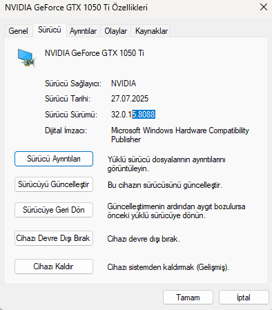 GTX 1050 Ti sistemde "VIDEO_TDR_FAILURE" hatası