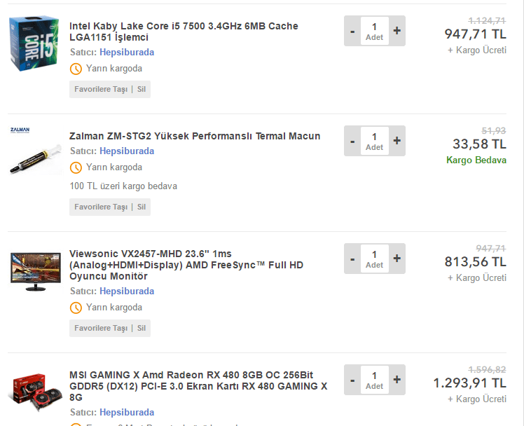 Hocam merhaba, bende 6 ay kadar önce i5 6600 işlemci ve zalman termal macunu almıştım fakat soğutucunun içinden de (hyper 212 evo) macun çıktı ve uzun süre idare ediyor. Eğer tasarruf etmek istersen almamanı öneririm. Hyper 212 evo soğutucuyu kullanıyorum ve bu güne kadar hiçbir sorun yaşamadım. Şimdiden hayırlı olsunResimde görülen bileşenler konuda bahsettiklerimle birebir aynı değil. Değişiklikler meydana geldi. Çok kısa süre sonra elime geçecek bir sistem. Son kez danışmak istediklerim var. Sistemde herhangi bir uyumsuzluk (Monitör - Ekran Kartı uyumsuzluğu dahil), sorun, eksiklik, oluşabilecek darboğaz ve benzeri birşeyler varsa yardımcı olur musunuz ?Eki Görüntüle 218401 Eki Görüntüle 218402 Eki Görüntüle 218403 Eki Görüntüle 218404 Eki Görüntüle 218405
