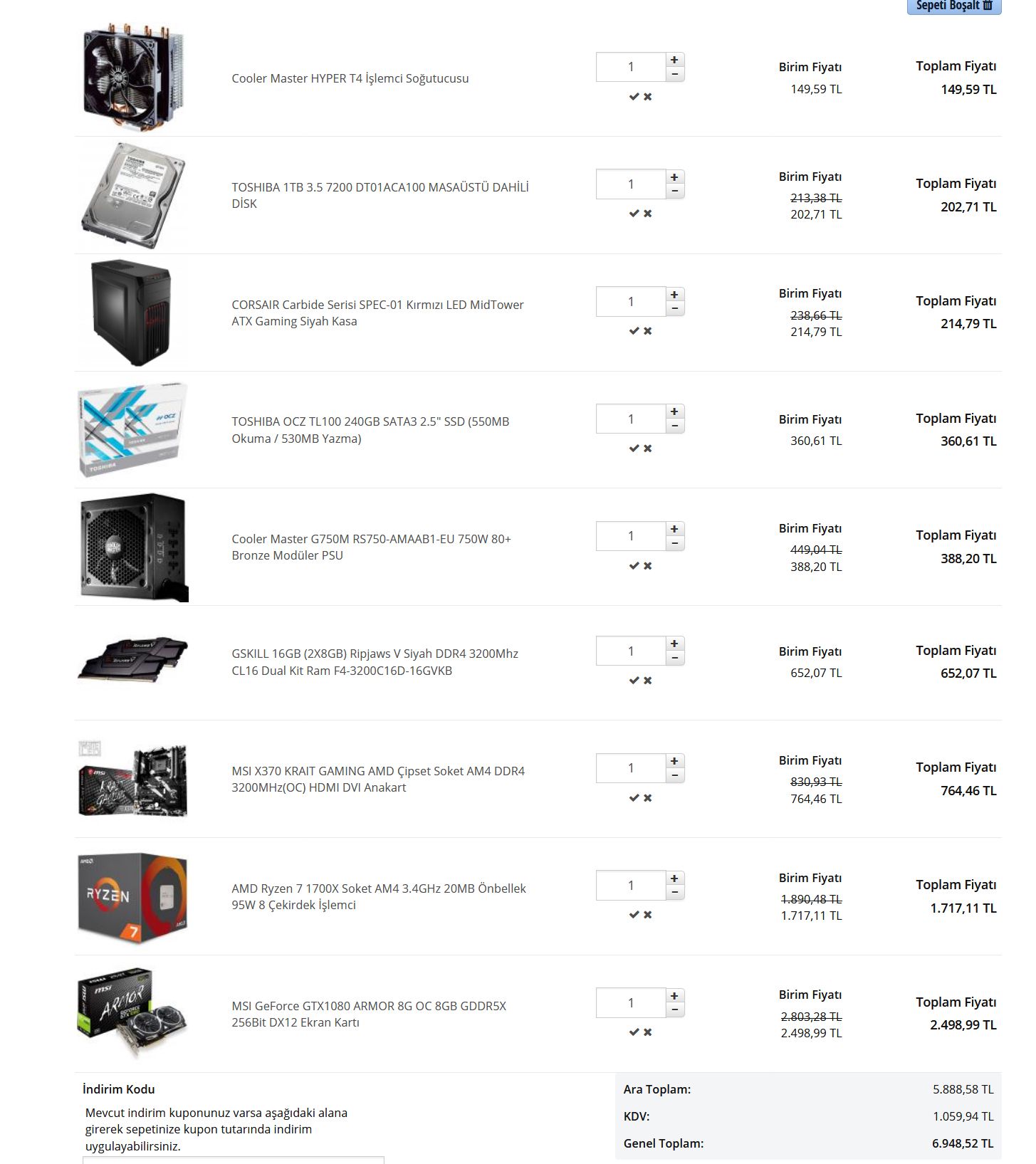 İtopyadan anca bunu çıkarabildim. En ucuz ve kaliteliyi seçmeye çalıştım paşamın listeye tam gidemedim stokta olmayan ürünler vardı.
