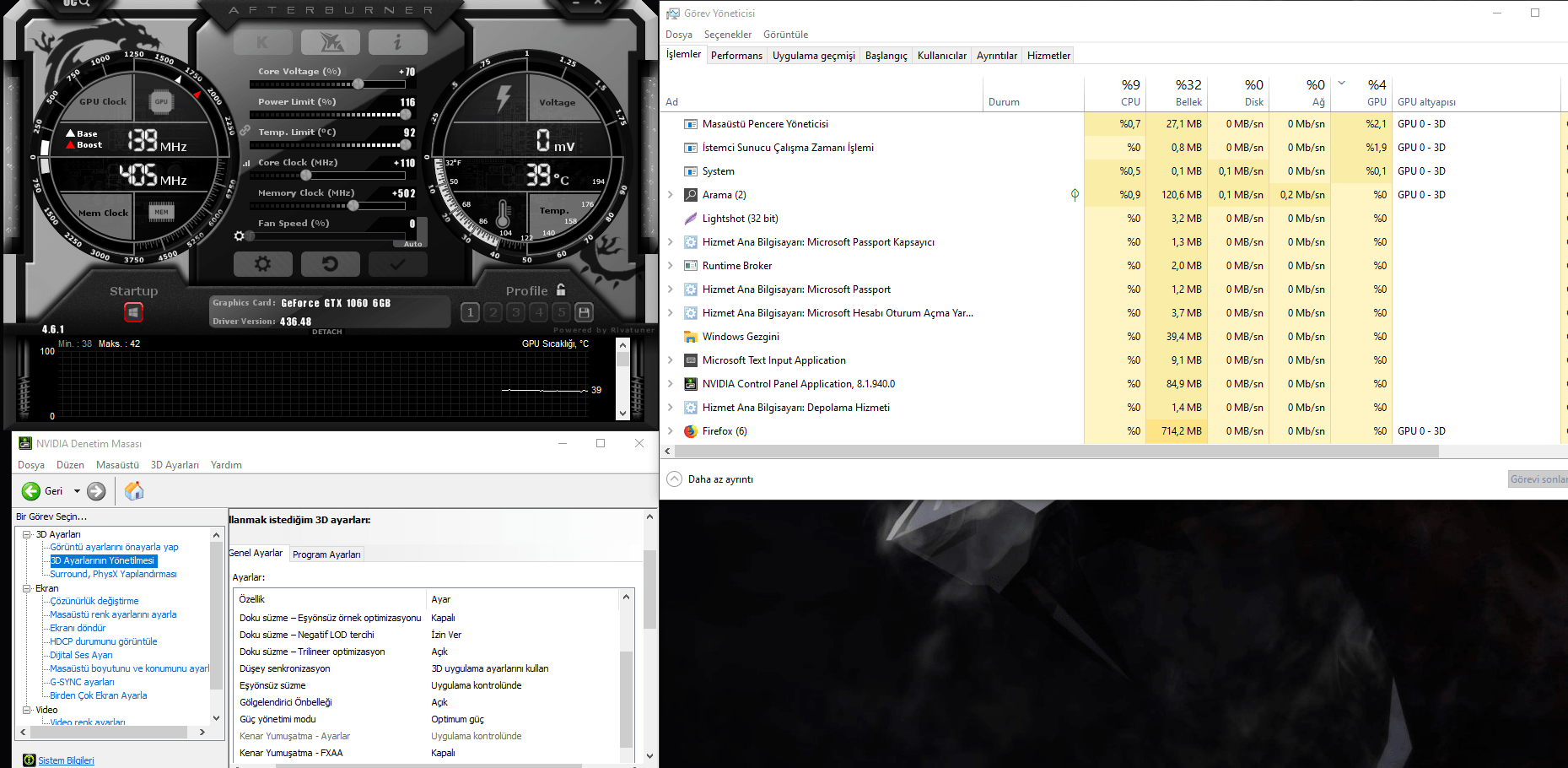 Yalnız 57 derece olan kısımda bir program çalıştırmışsınız gibi, bu kanıya sol taraftaki çekirdek saat ve bellek hızlarına bakarak vardım.