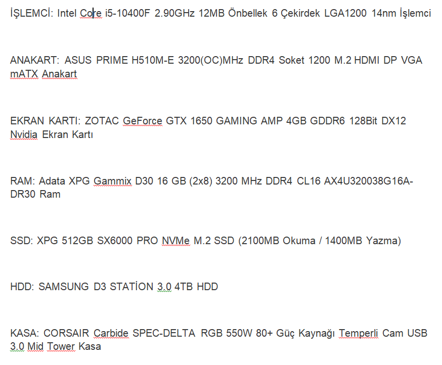 Arkadaşlar merhaba sistemim altta belirttiğim gibi. Sorunuma gelecek olursak şu şekilde; CS:GO ve PUBG oynarken çok nadir 2-3 saniye takılma meydana geliyor sebebini anlayamadım bilgisayar 2-3 saniye kilitleniyor anlayacağınız, sebebi nedir ne yapmam gerekiyor? Sorun neden kaynaklıdır? Yardımcı olursanız sevinirim.
