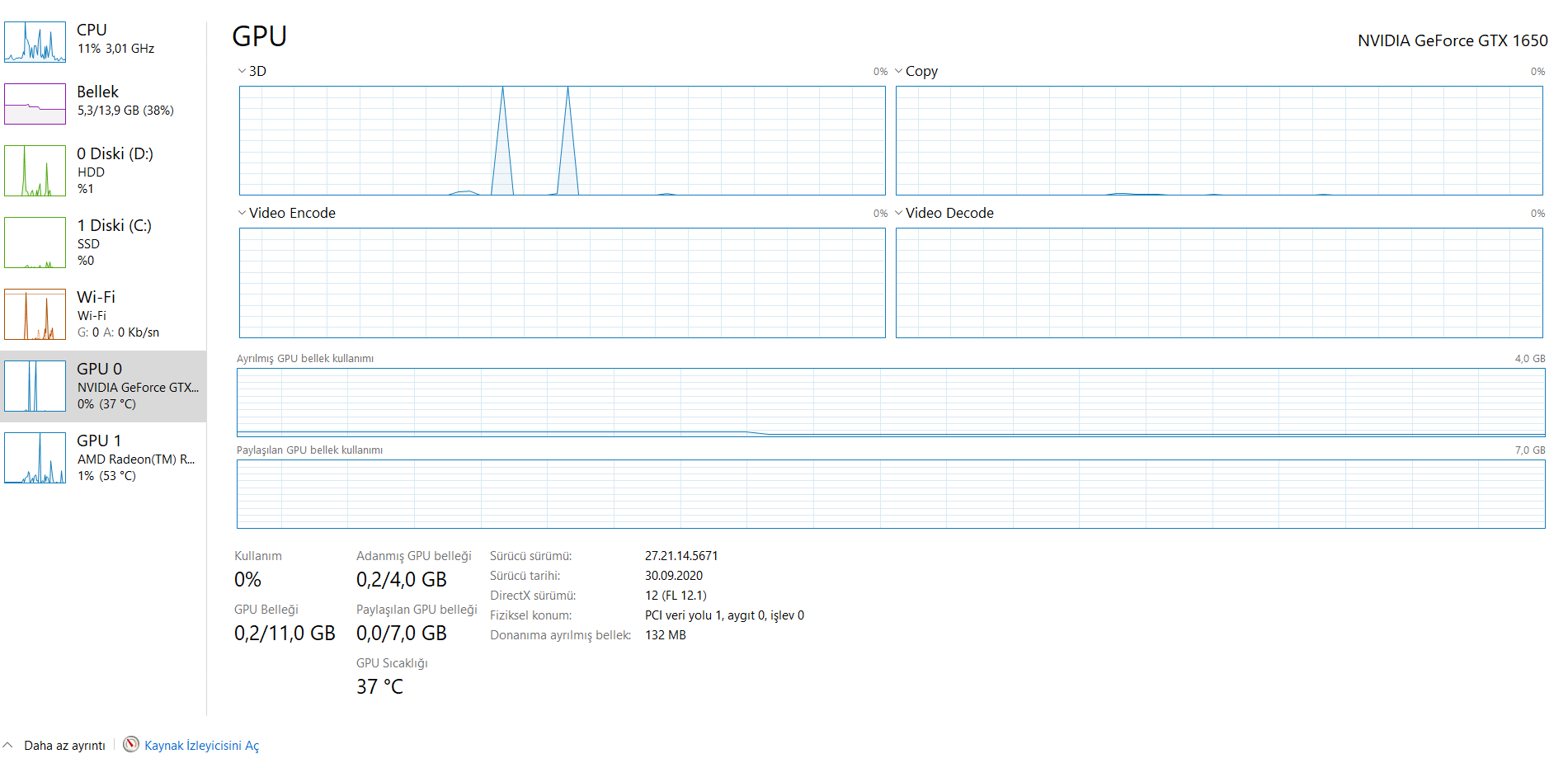 Görev Yöneticisi'ni açtığımda bir saniyeliğine CPU-GPU aşırı kullanımını gördüm.