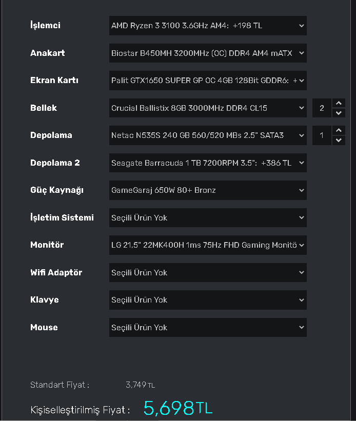 monitor hariç iyimi?Bu fiyata monitör dahil biraz daha iyi toplanabilir. ( Düzeltiyorum RAM 16 GB'mış görmemişim.)