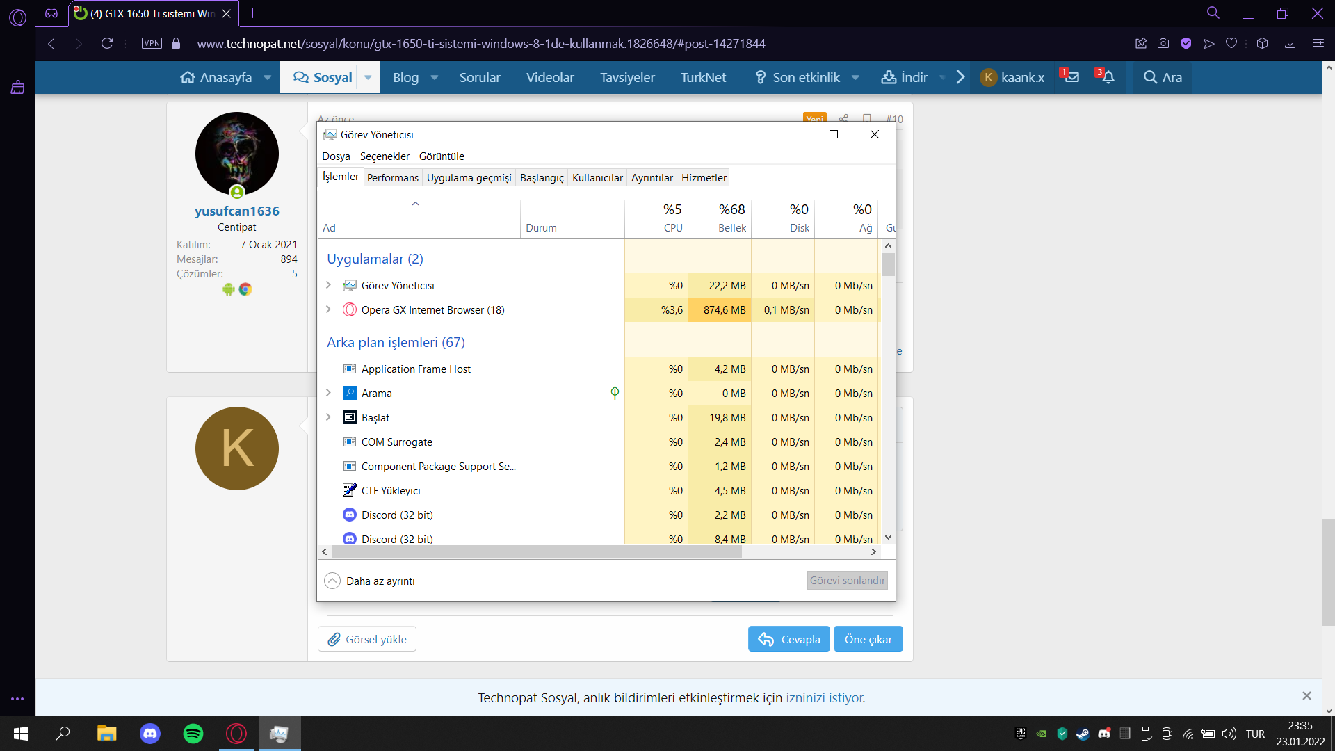 Öncelikle şu konuya değineyim: Şuan Windows 10'dayım , Opera GX'de 2 sekme açık, arkada Discord , Kaspersky, Steam , Epic Games , Geforce Now açıkken 4GB RAM kullanıyor, aynısı Windows 8.1'de iken maximum 2GB RAM kullanıyor. Bu RAM kullanımına RAM'im 16 GB olsa dikkat etmezdim ancak 8GB iken çok sıkıntı çıkartıyor...