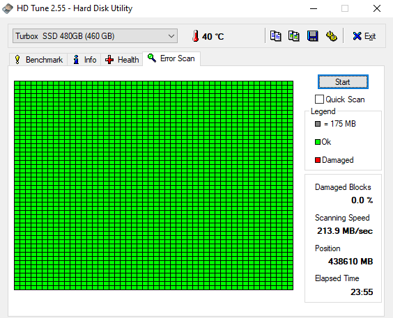 HD Tune ile "Quick Scan" kapalı şekilde "Error Scan" yapın.