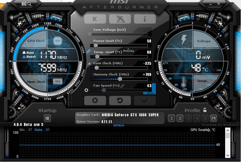 GTX 1660: 61-72 derece, %33 fan (1100 RPM) fan hızı, 22 mH.