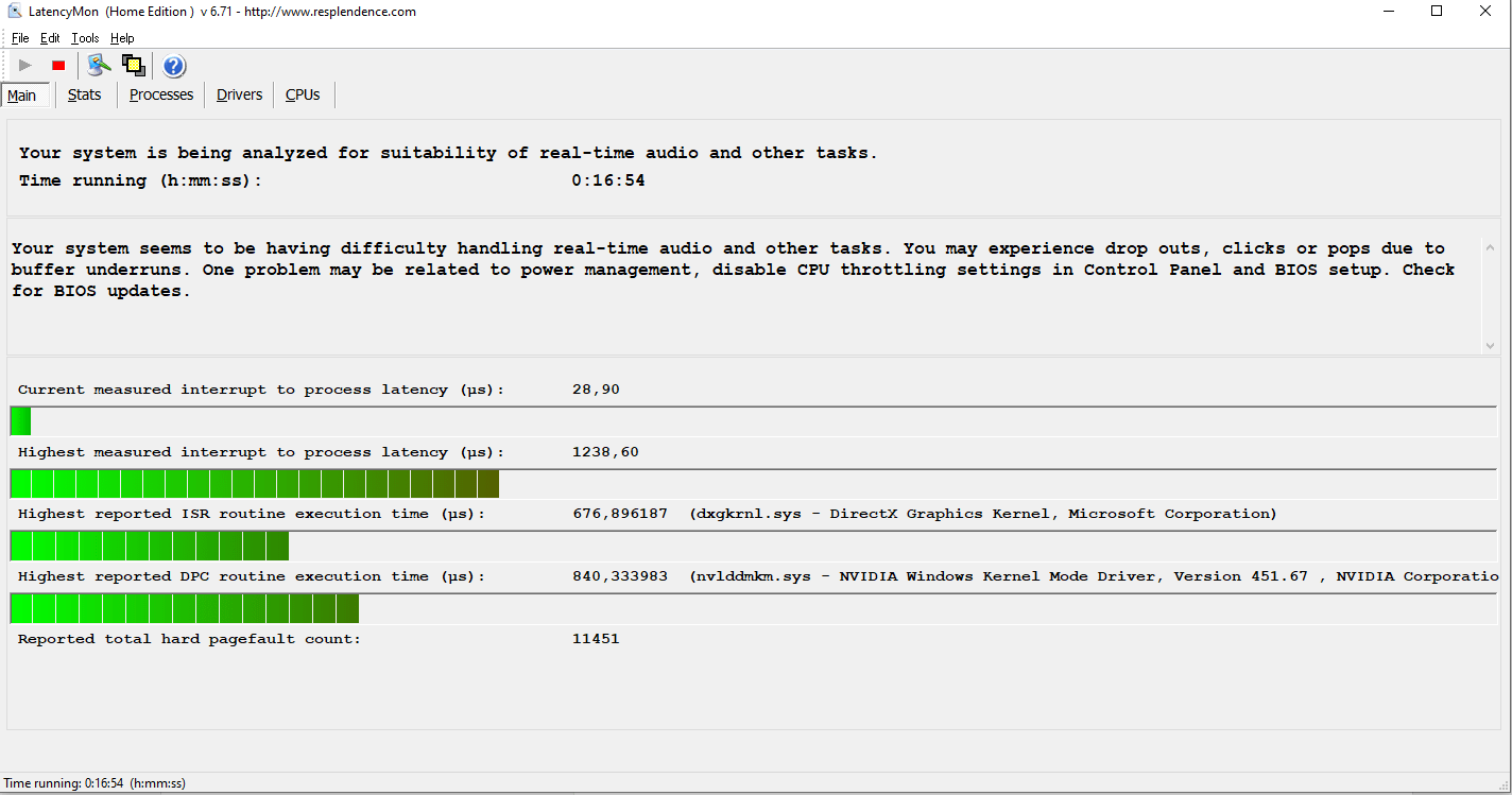 Bilgisayarı 6 ay önce aldım. Son 1 haftadır aşırı yavaş açılmaya başladı; yaklaşık 2 dakikayı buluyor. Bugün ise açıldıktan sonra internet tarayıcısı ve dosya açmaya çalıştığımda donma problemleri yaşadım. Ciddi bir performans düşüklüğü var. Titanfall 2 oynadığımda oyunda sadece 1 kere takıldı ama masaüstünde bir şeyler yaparken sürekli bir yavaşlık hissediliyor. BIOS Update'i yaptım ama yavaşlık geçmedi. SSD'nin kötü olması kaynaklı olabilir mi? Değil ise sizce ne kaynaklıdır? Latencymon ekran görüntüsünü ekliyorum.