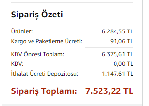 Evet, 7500TL oluyor fiyatı.Yurt dışından geliyor, bu görünen fiyatı. Sipariş ekranına gelin görürsünüz.
